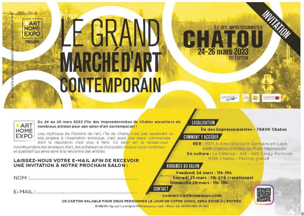 Avis aux parisiens ! Je participerai à la fin du mois au prochain Grand Marché d’Art Contemporain à Chatou (78) – sur l’île des Impressionnistes.